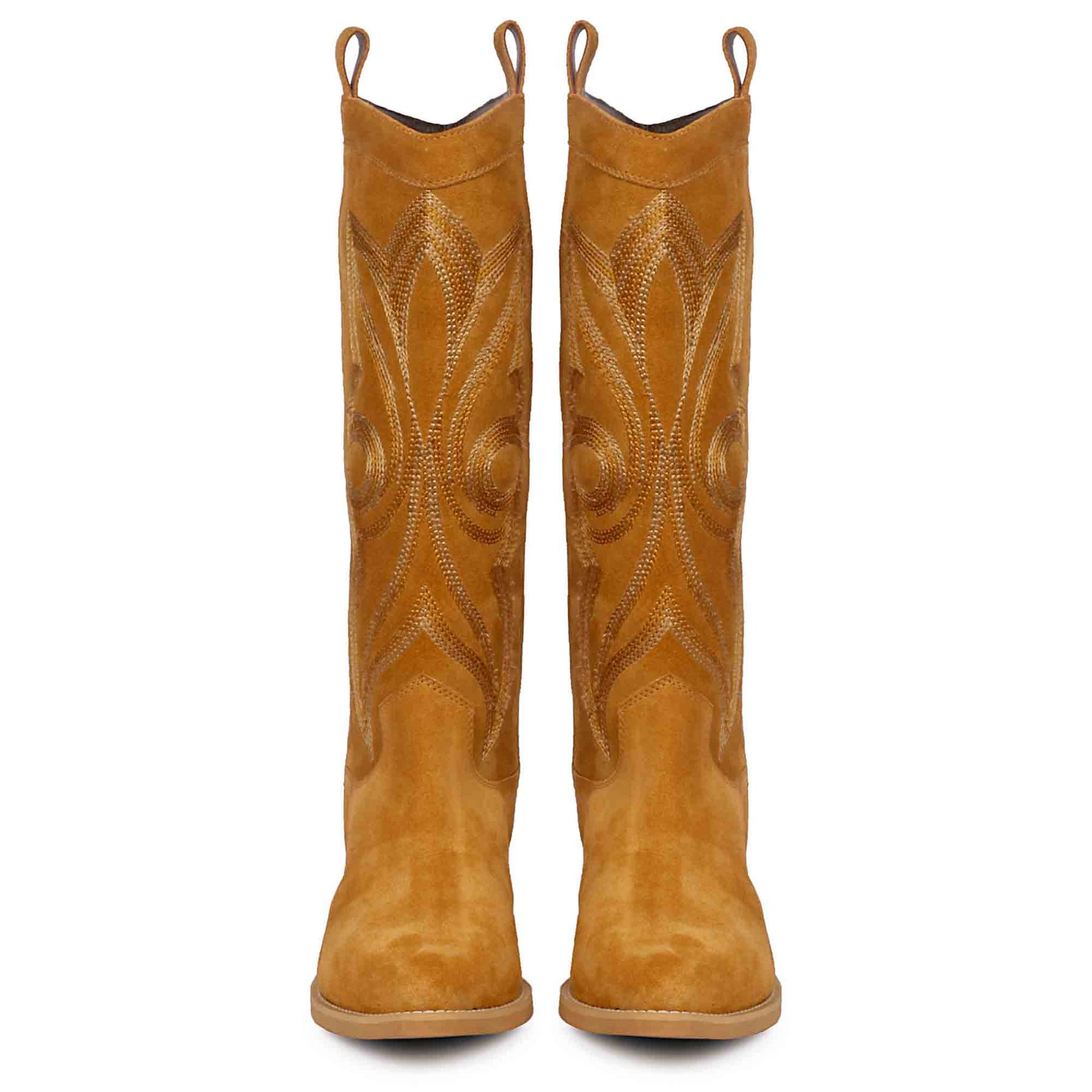 Saint Martina Tan Stitched Leather Handcrafted Cowboy Boots