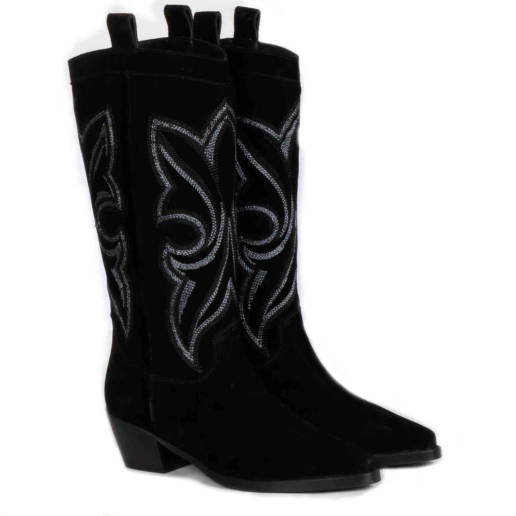 Saint Martina Black Stitched Leather Handcrafted Cowboy Boots