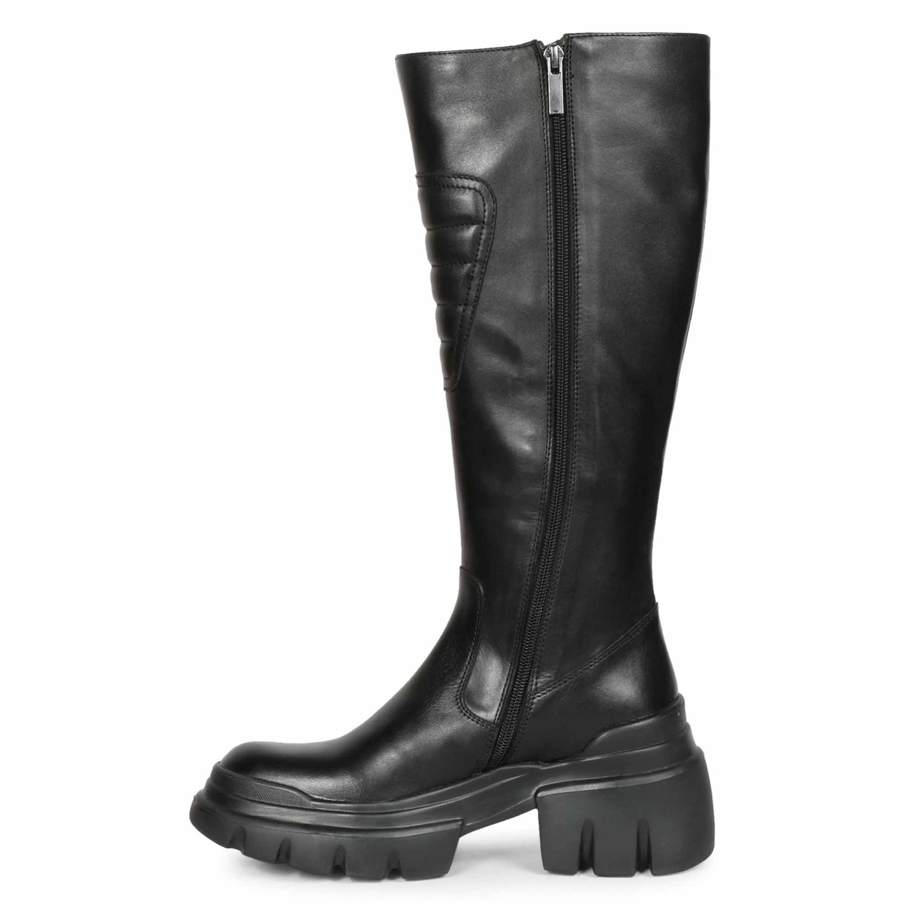 Saint Eloïse Black Leather Lug Sole Long Boots