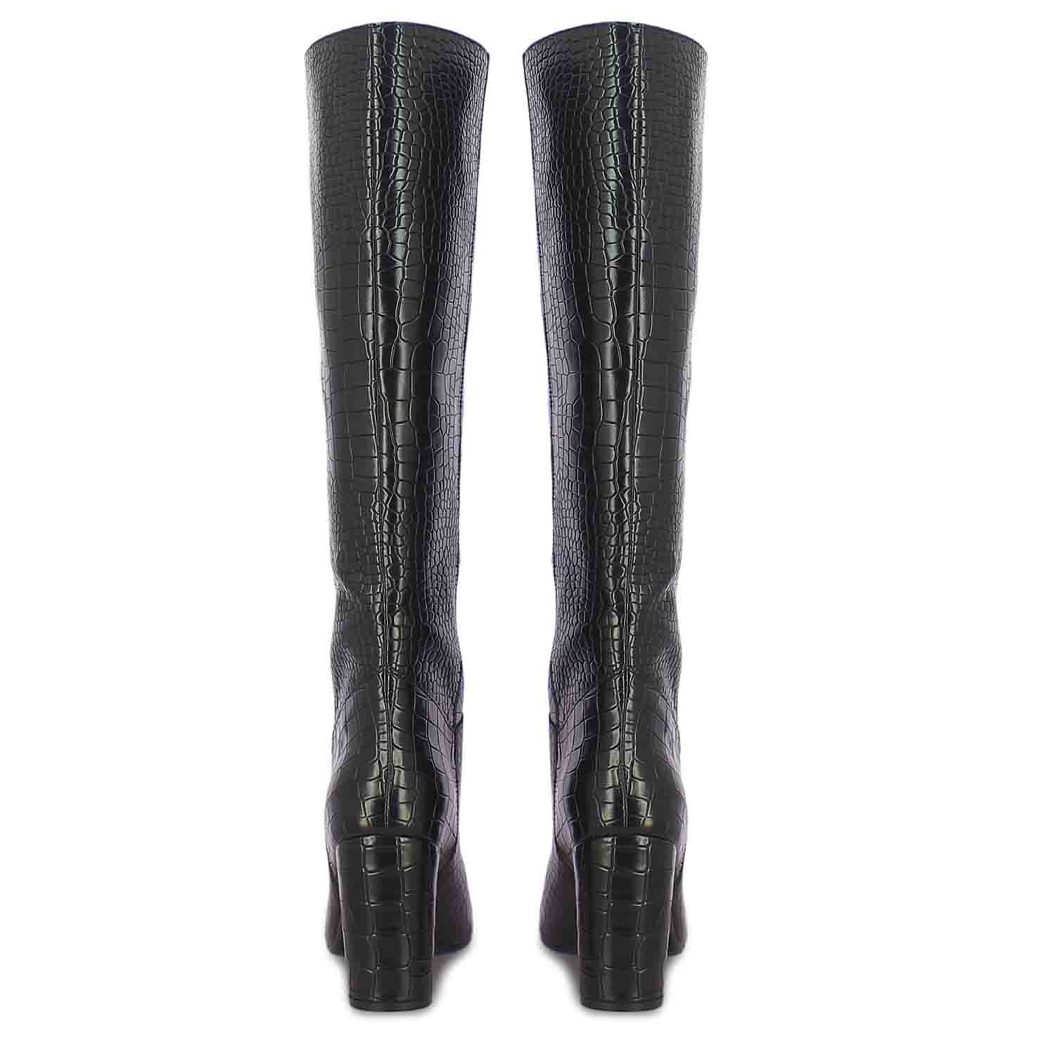 Saint Emily Black Croc Embossed Vegan Leather Long Boots