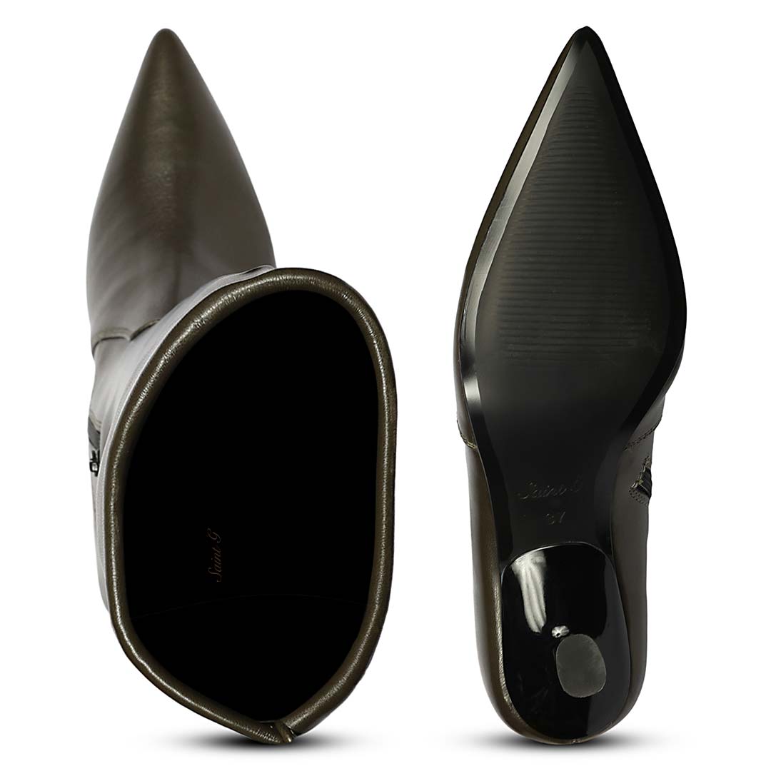Meet your new fall obsession, The Autumn Whisper Boot. Crafted in olive stretch napa that feels like warm caramel, these over-the-knee stunners are designed for strutting through crisp leaves and turning heads with every step. The silhouette? Still sleek. The vibe? Effortlessly luxurious. They hug the leg like a second skin, while the low kitten heel keeps things city-chic and endlessly wearable. Slip them on for a coffee run, a gallery stroll, or that spontaneous weekend escape- they’re the “main character” boots your wardrobe has been waiting for.