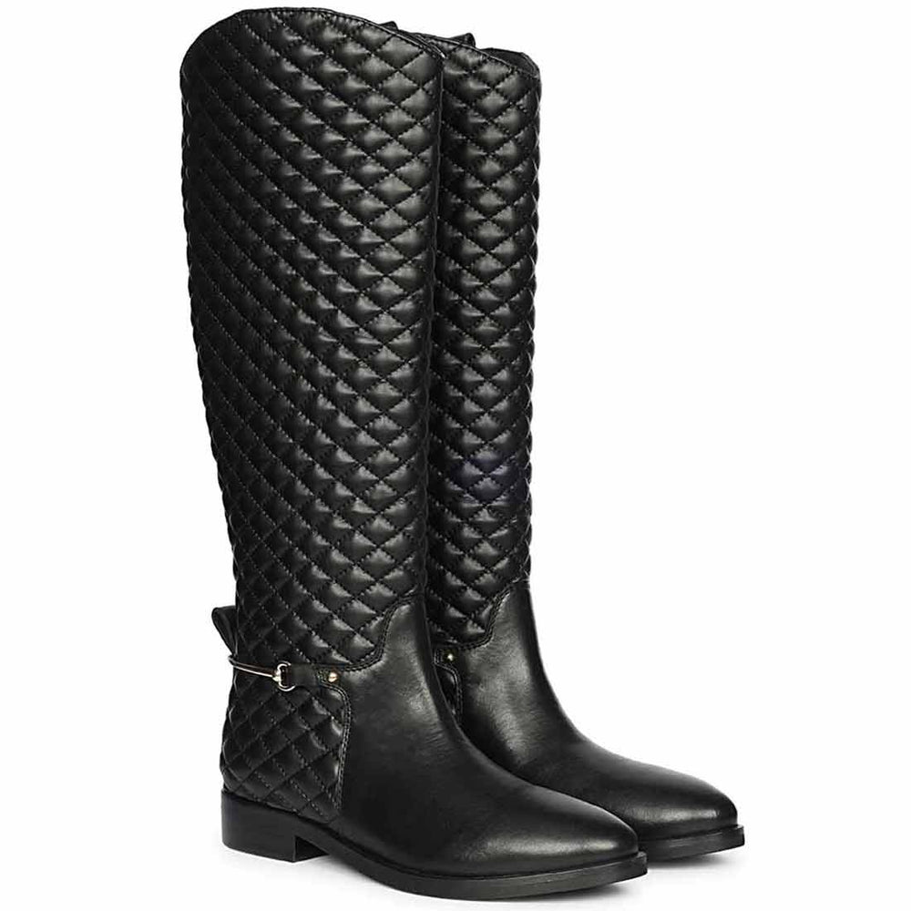Saint Celestia Black Leather Crystal High Ankle Boots