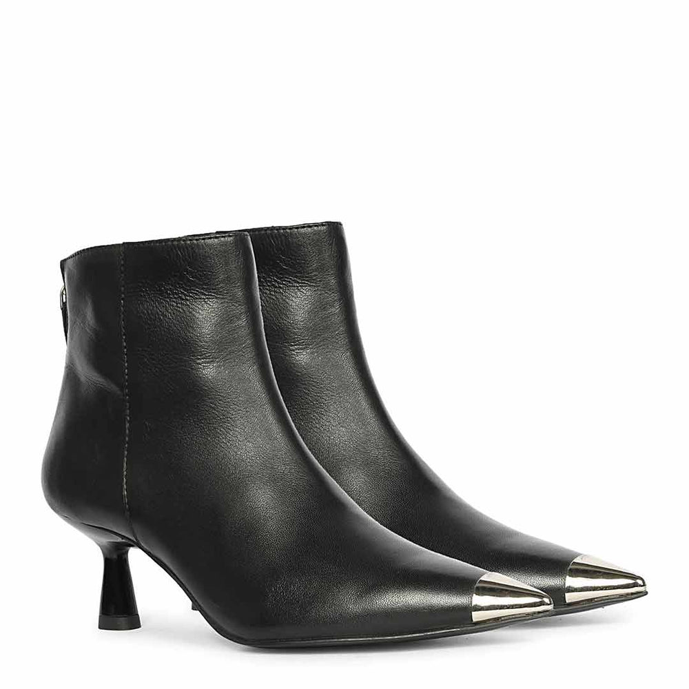 Saint Celvyn Black Leather Pointed Toe Cap Ankle Boots