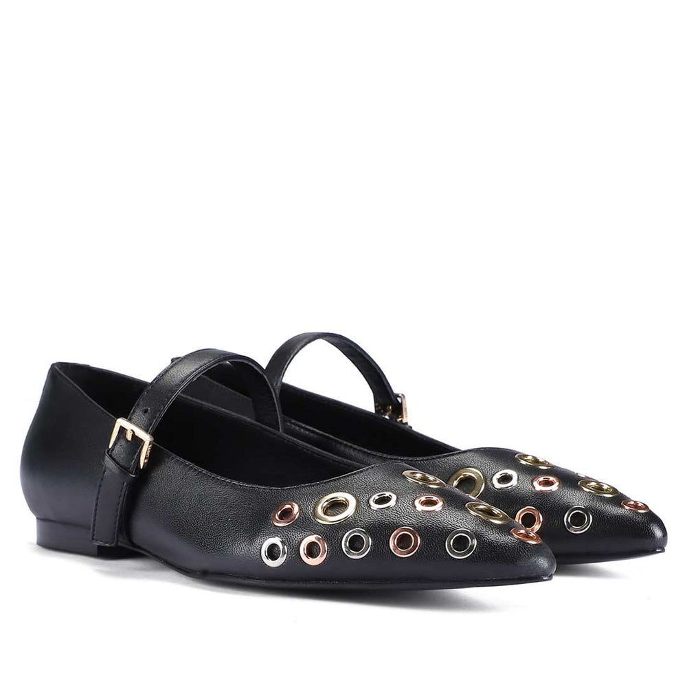 Saint Anouk Multi Eyelets Black Leather Ballerinas