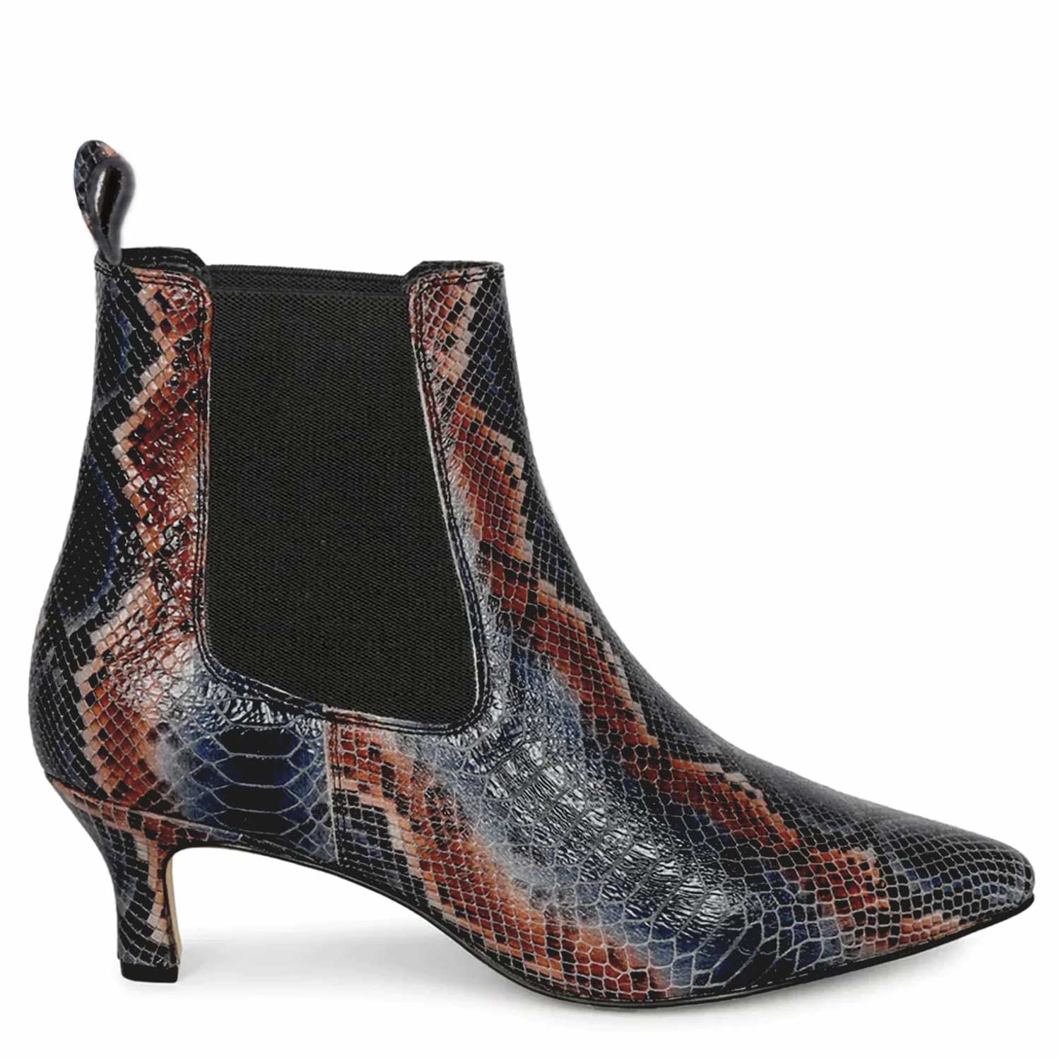 Chic snake print leather kitten heel boots for a stylish look. Perfect for any occasion. Elevate your style with these trendy boots