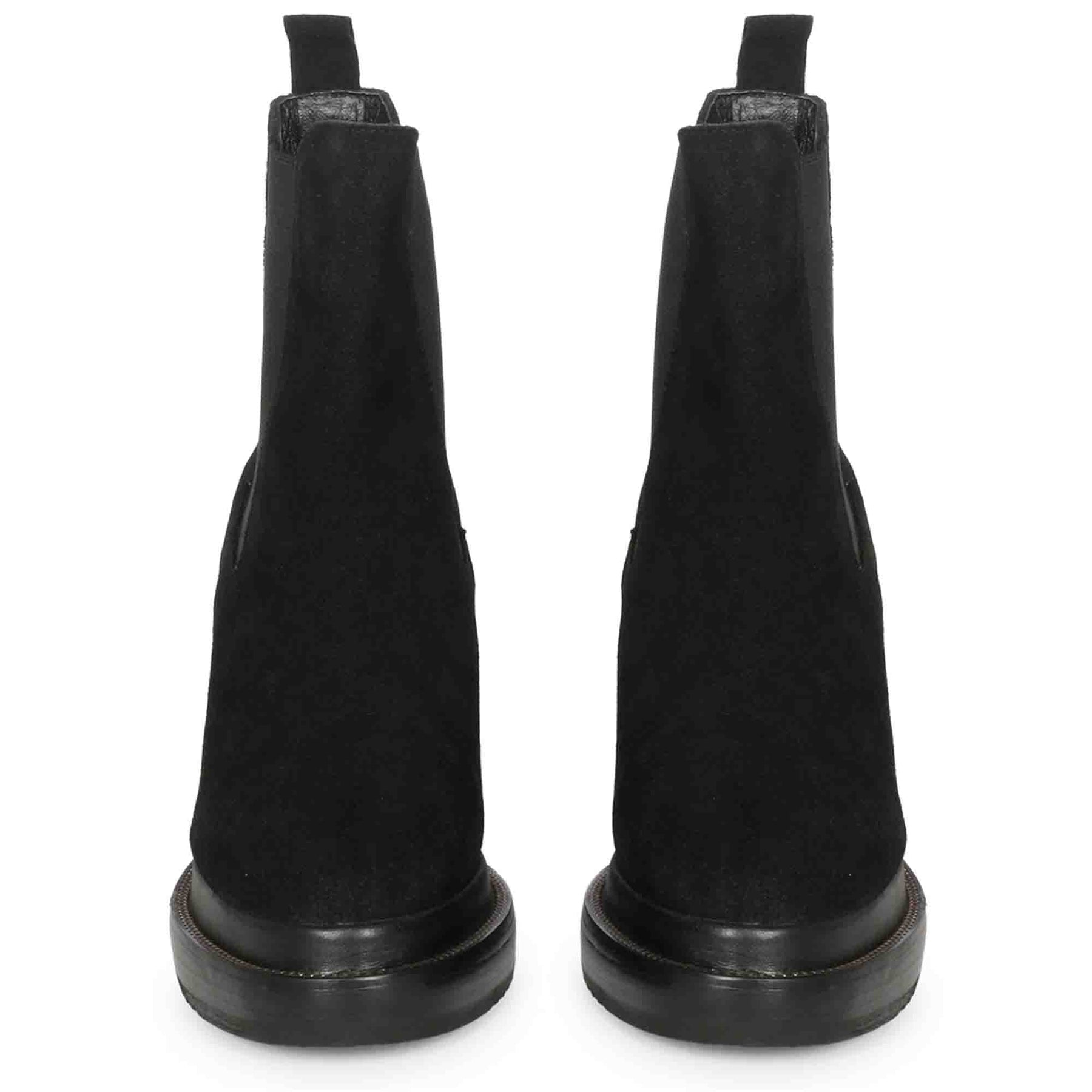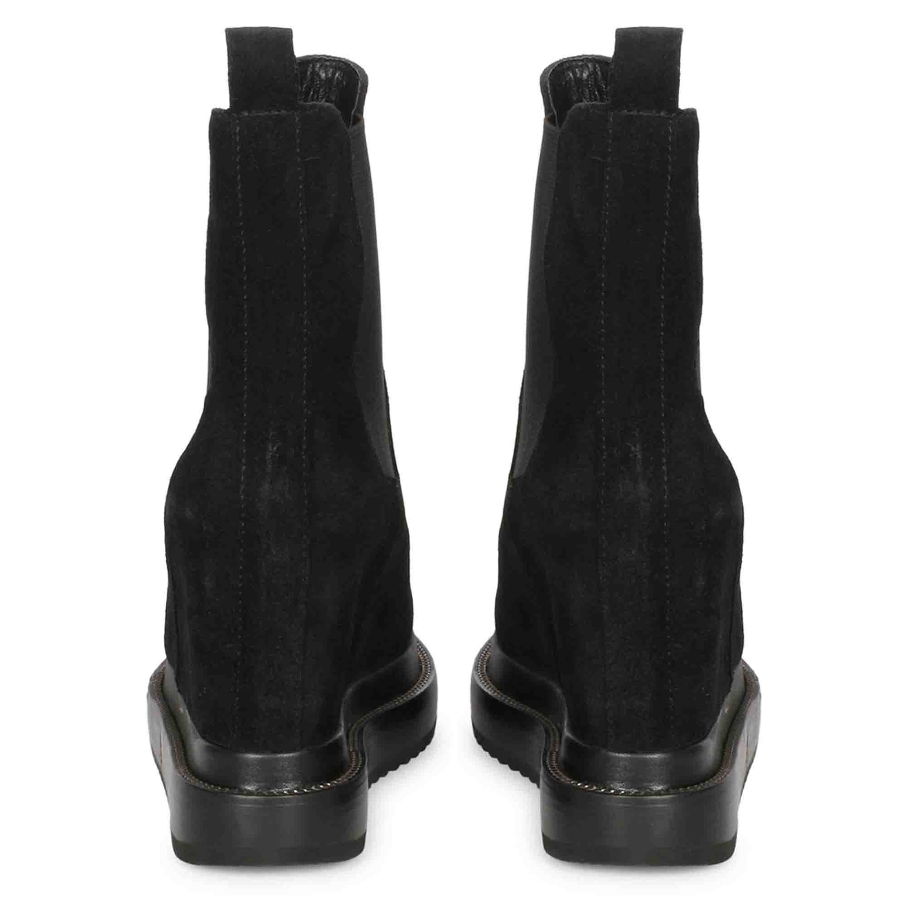 Slip into style with the Carolin black suede leather inner wedge heel boots. Featuring both side elasticated panels and a pull tab, these leather boots provide a perfect fit. Stay cozy with their leather lining and insole, while rocking a handcrafted luxury look for winter.