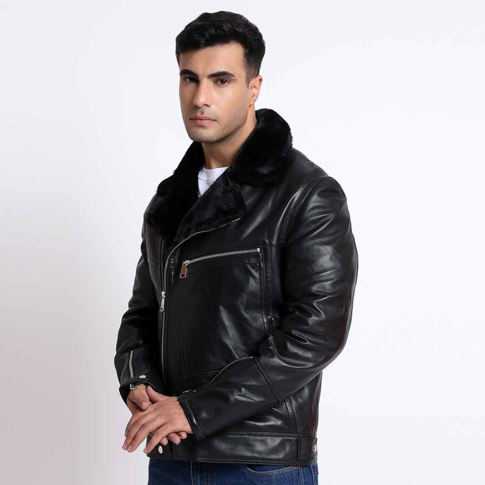 For those chilly days, the jacket boasts a luxurious fur lining, adding an extra layer of warmth and comfort. Whether you're cruising down the highway or navigating the urban jungle, this biker jacket is your reliable companion.