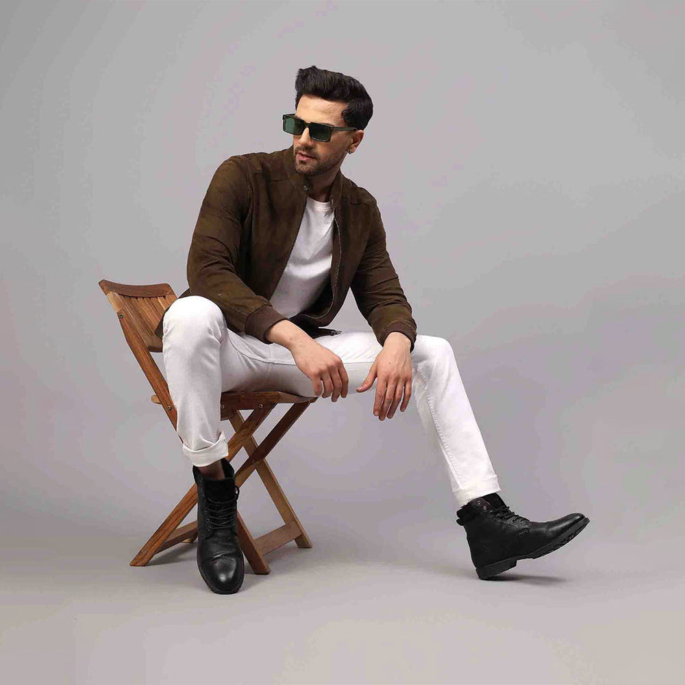 Saint Moreno Olive Suede Leather Men's Bomber Style Jackets