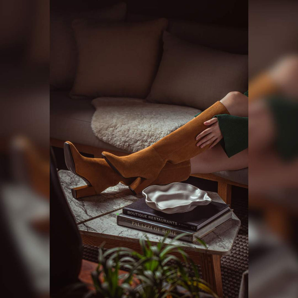 Saint Priscilla Tan Suede Leather Knee High Slouch Boots