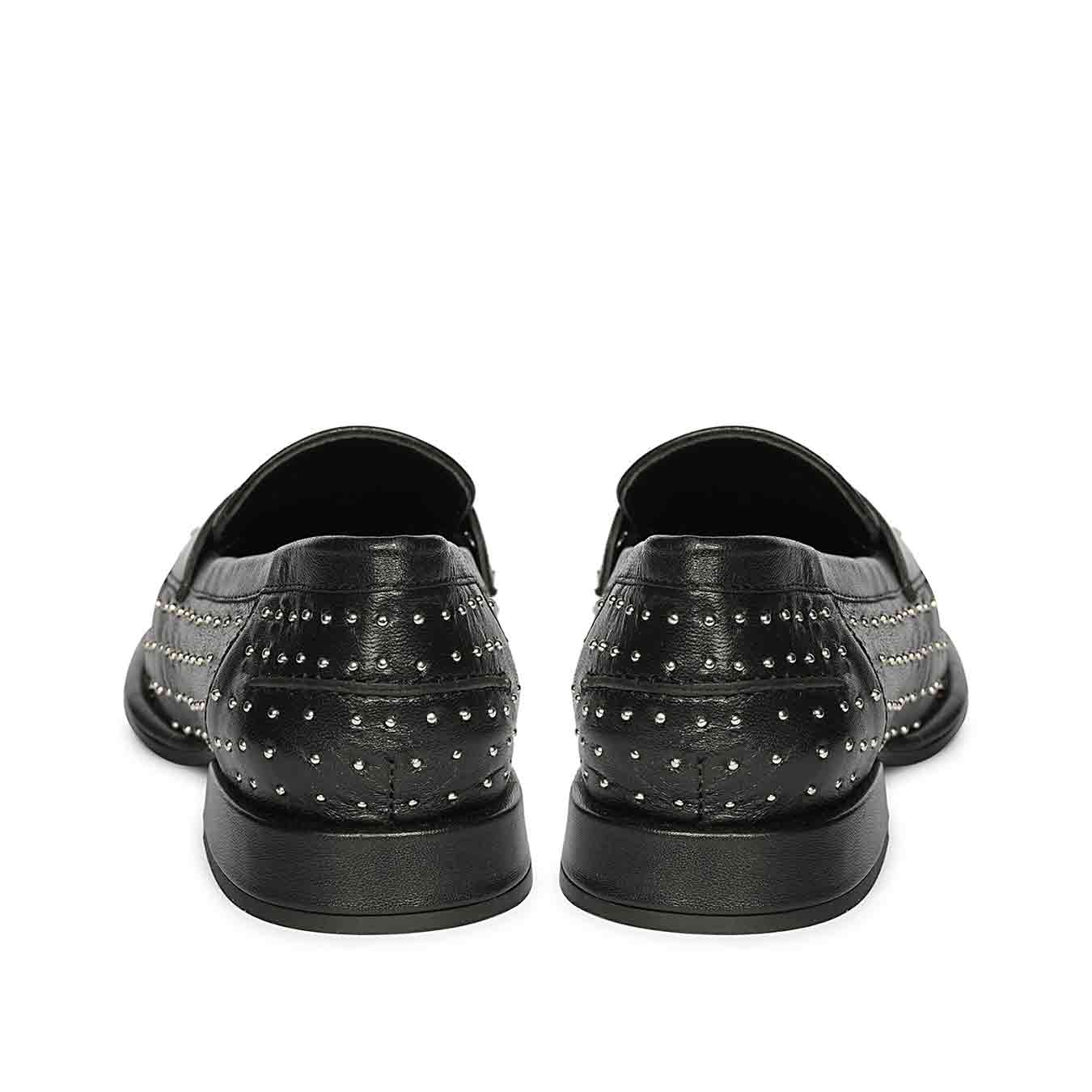 Crafted in rich black Atena leather, the Carol Moccasins by SaintG blend timeless styling with a fierce modern twist. Studded with sleek nickel rivets and set on a sculpted heel, they deliver effortless edge and elevated comfort. Finished with a saddle strap, these slip-ons are made to turn heads.