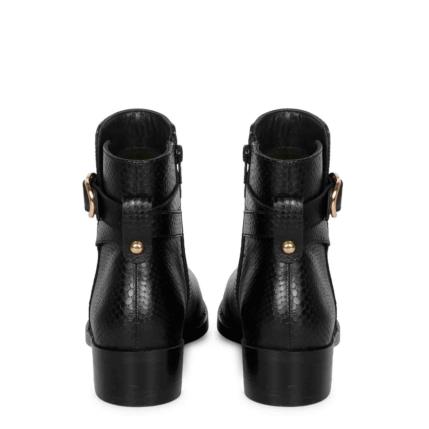 Saint Eleanor Black Leather Handcrafted Side Zippers Ankle Boots