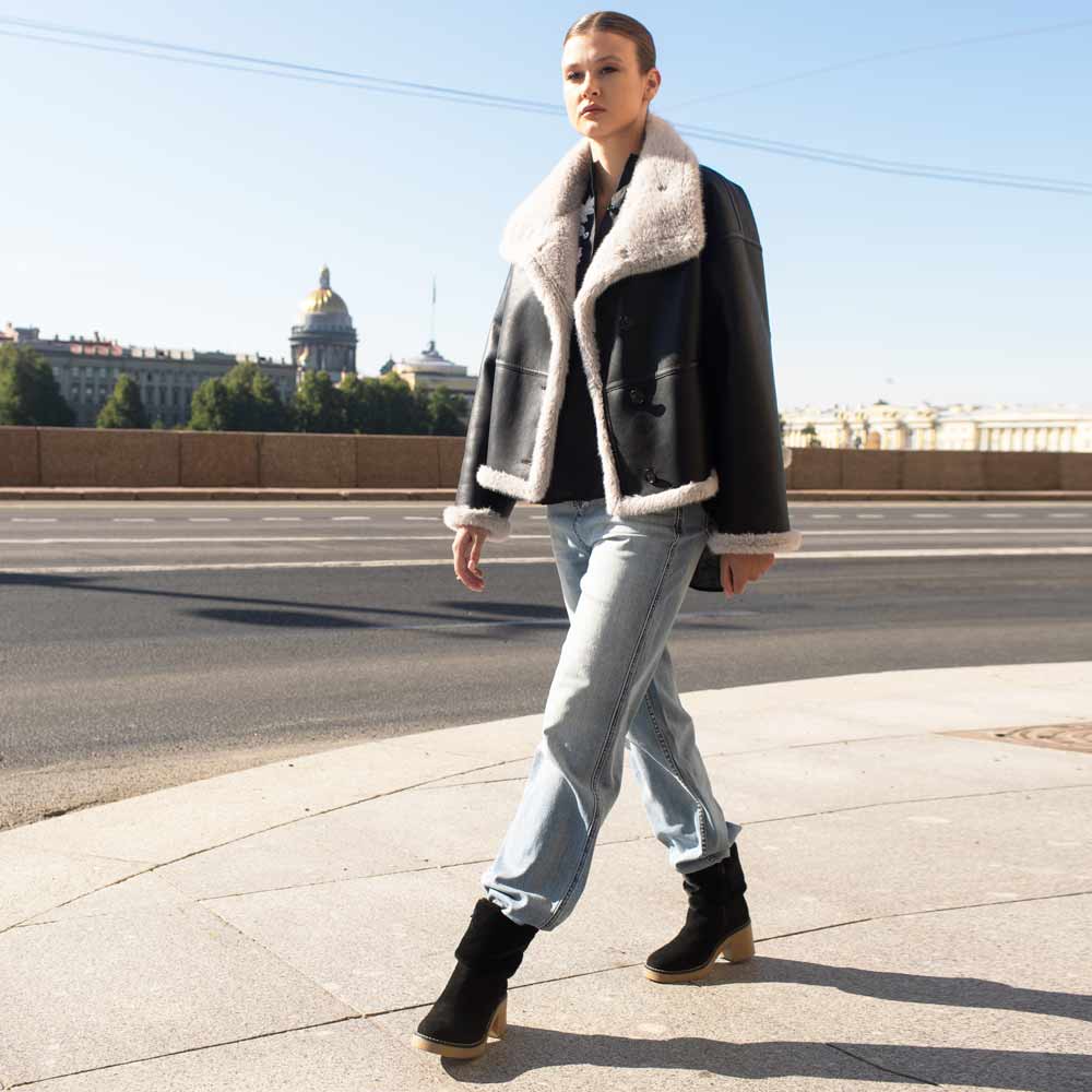 Cool days, cozy steps. Saint Glacienne brings together black suede leather, a cloud-like faux fur cuff, and a chunky sole that feels as good as it looks. Just pull on and go — winter never felt this easy.