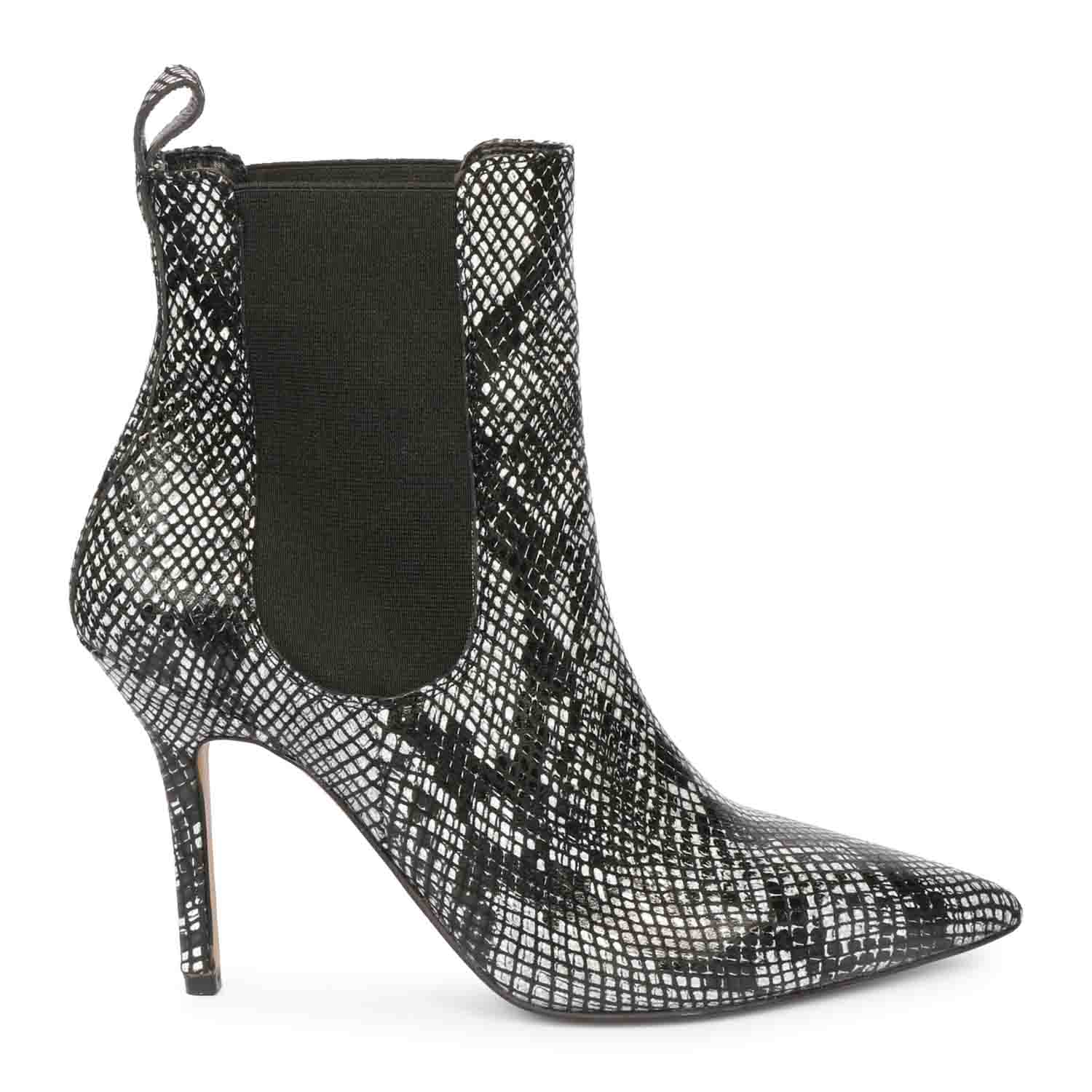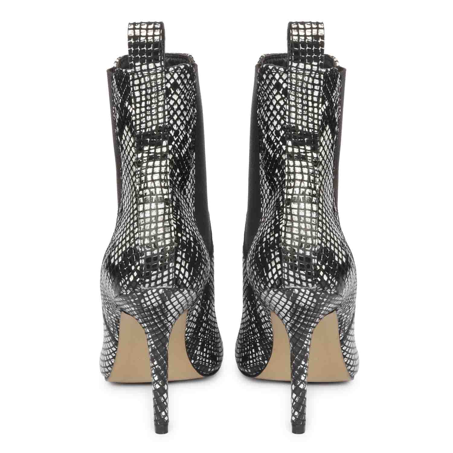 Saint Arely Grey Snake Print Leather Stiletto Ankle Boots