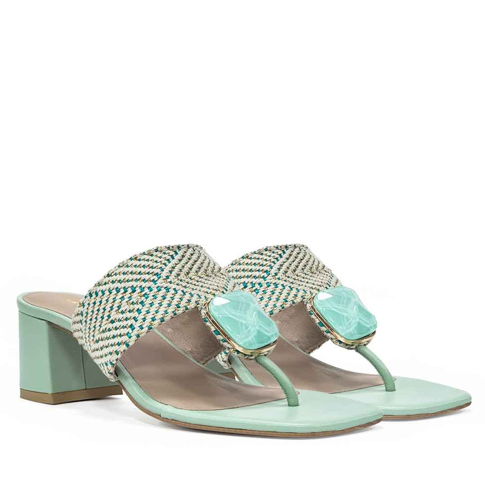 Saint Stevie Stone Jeweled Turquoise Raffia Block Heels