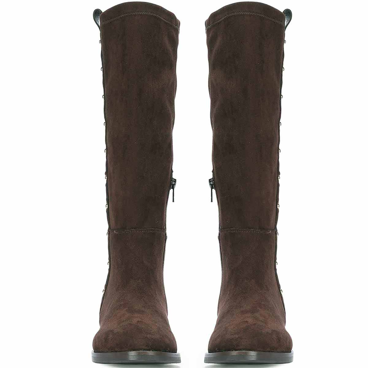 Saint Marlowe Eyelets Brown Stretch Suede Long Boots
