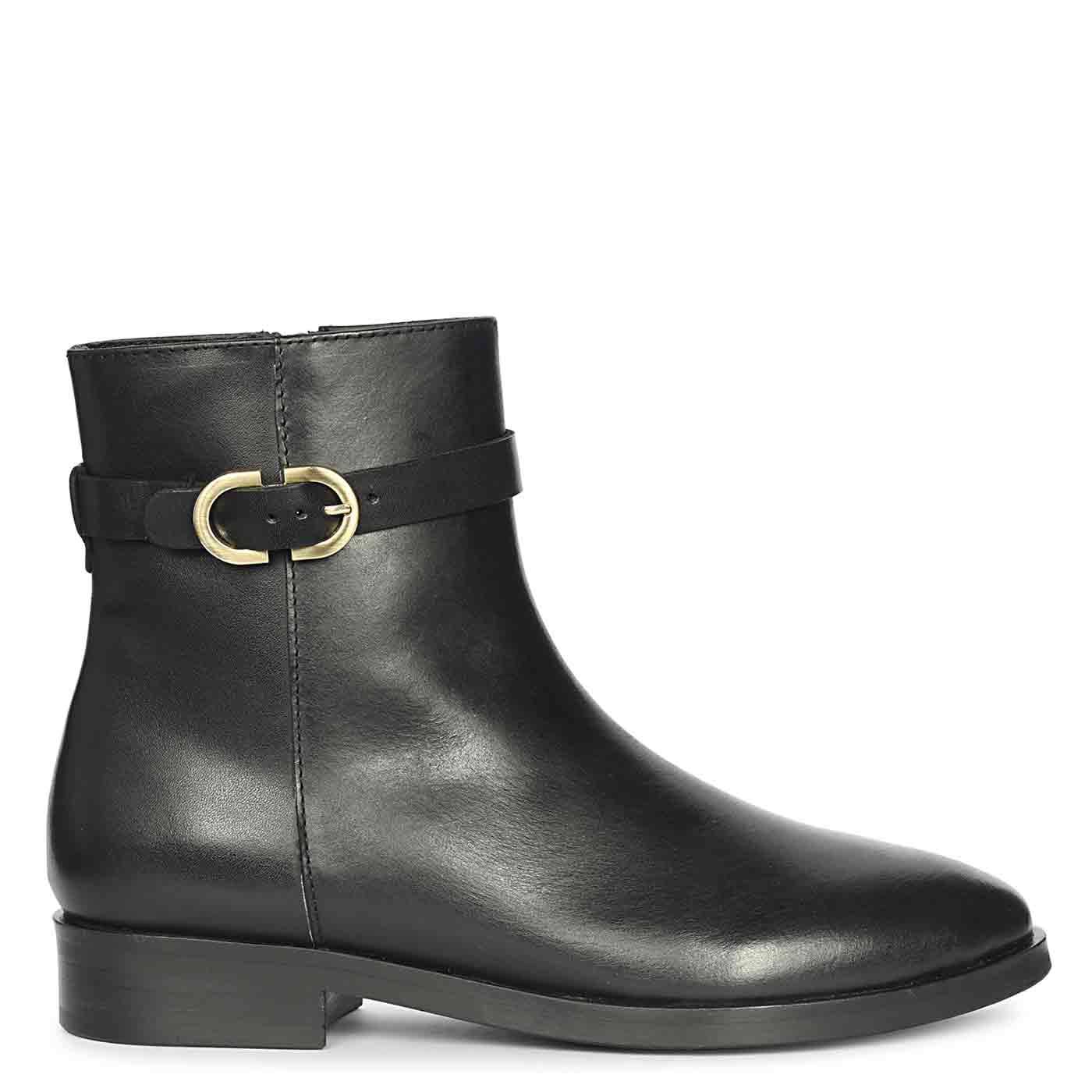 Saint Reese Black Leather Gold Buckle Decor Ankle Boots